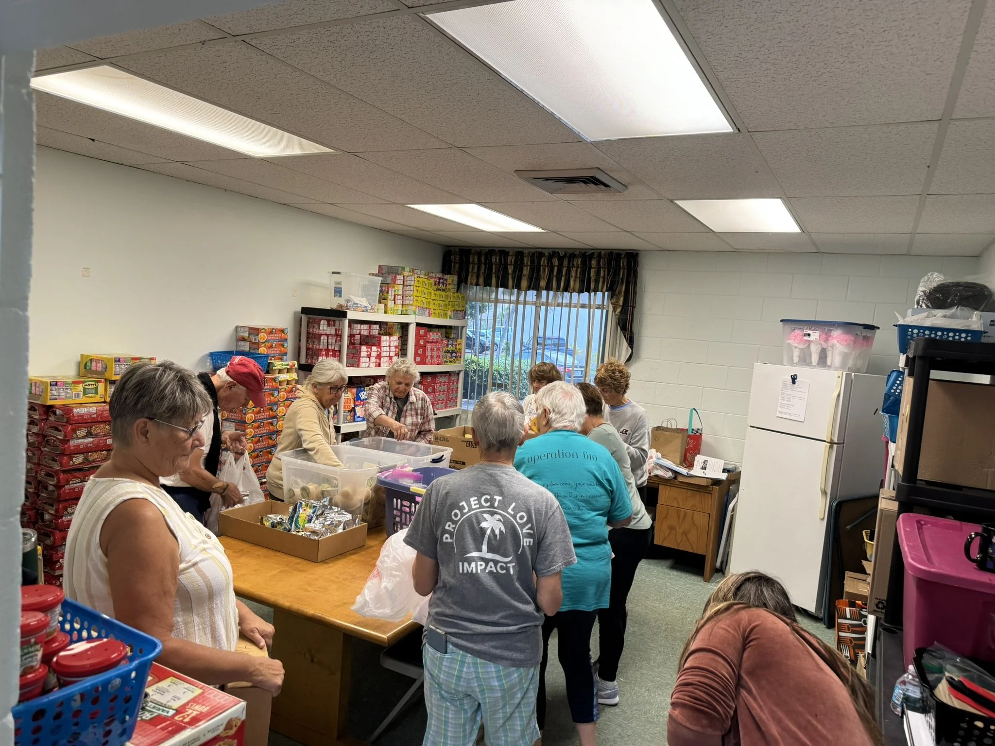 Ministry volunteers meet at First Church on Thursdays from 8am-9:30am during the school year (August to June) to unpack and shelve food products and then to assemble bags of food for the kids. Volunteers then deliver bags to the schools. Seasonal Visitors are welcome to participate. Fill out a mission interest form for more information.